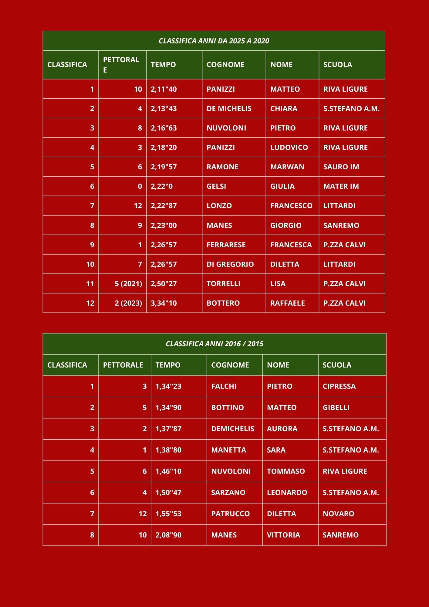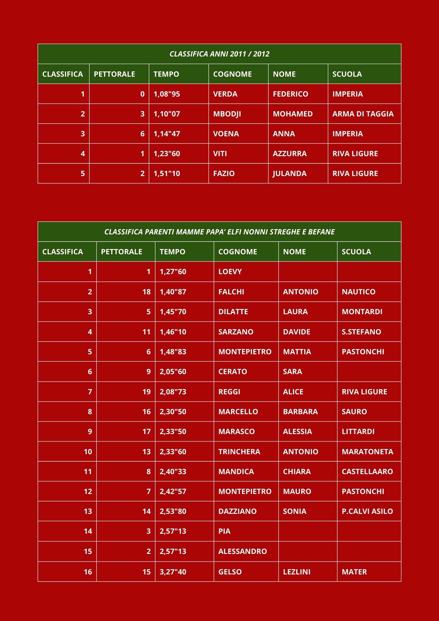 RISULTATI CORSA DI BABBO NATALE 2025