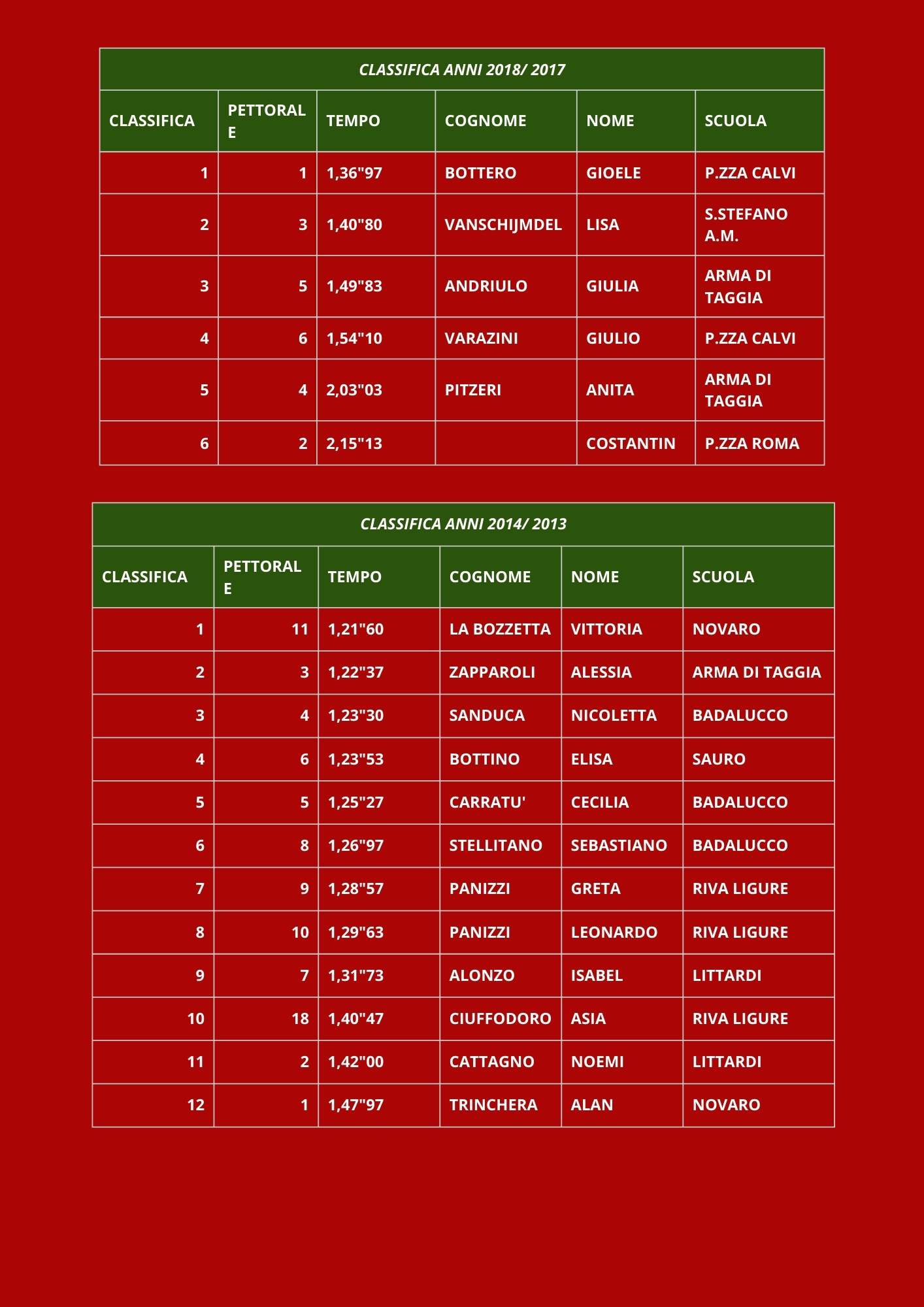 JUNIORES MASCHILI